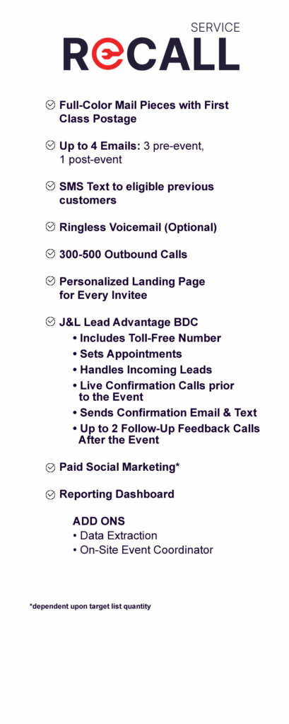 Our sole focus is delivering superior ROI by leveraging your DMS data to identify and engage both loyalists and prospective owners. By utilizing the most cost-effective and high-impact channels available, we turn data into actionable results. Experience the Ultimate Marketing Machine. Level up with J&L Marketing and let us help you turn every touchpoint into a closed deal.